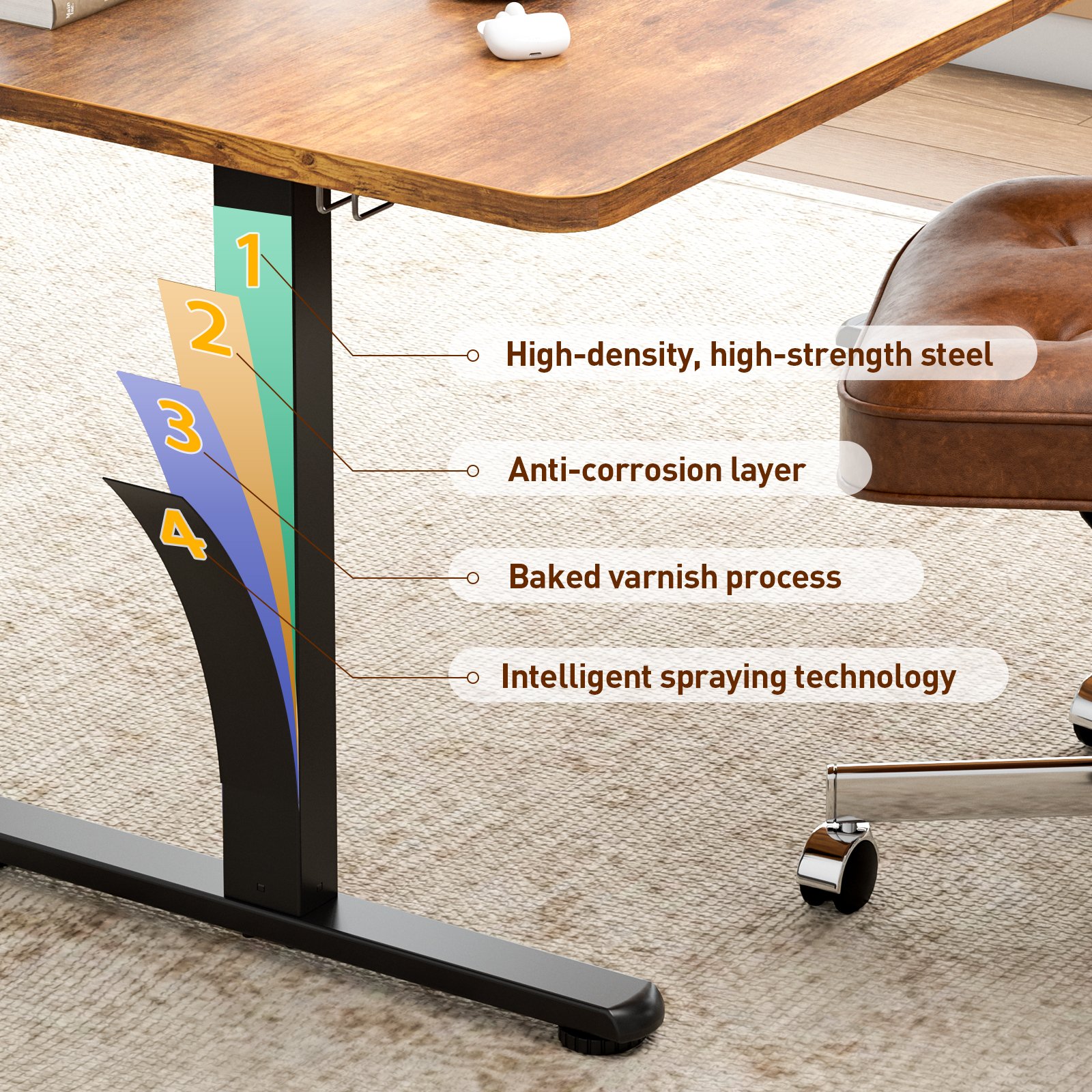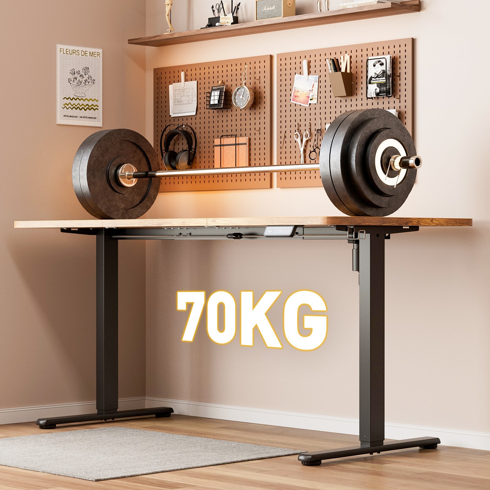 electric standing desk 140x60cm (55.1"x23.6"), height adjustable sit stand desk with hooks, metal frame stand up desk with powerful motor, ergonomic computer desk for home office (brown)Electric Standing Desk 140x60cm (55.1″x23.6″), Height Adjustable Sit Stand Desk with Hooks, Metal Frame Stand up Desk with Powerful Motor, Ergonomic Computer Desk for Home