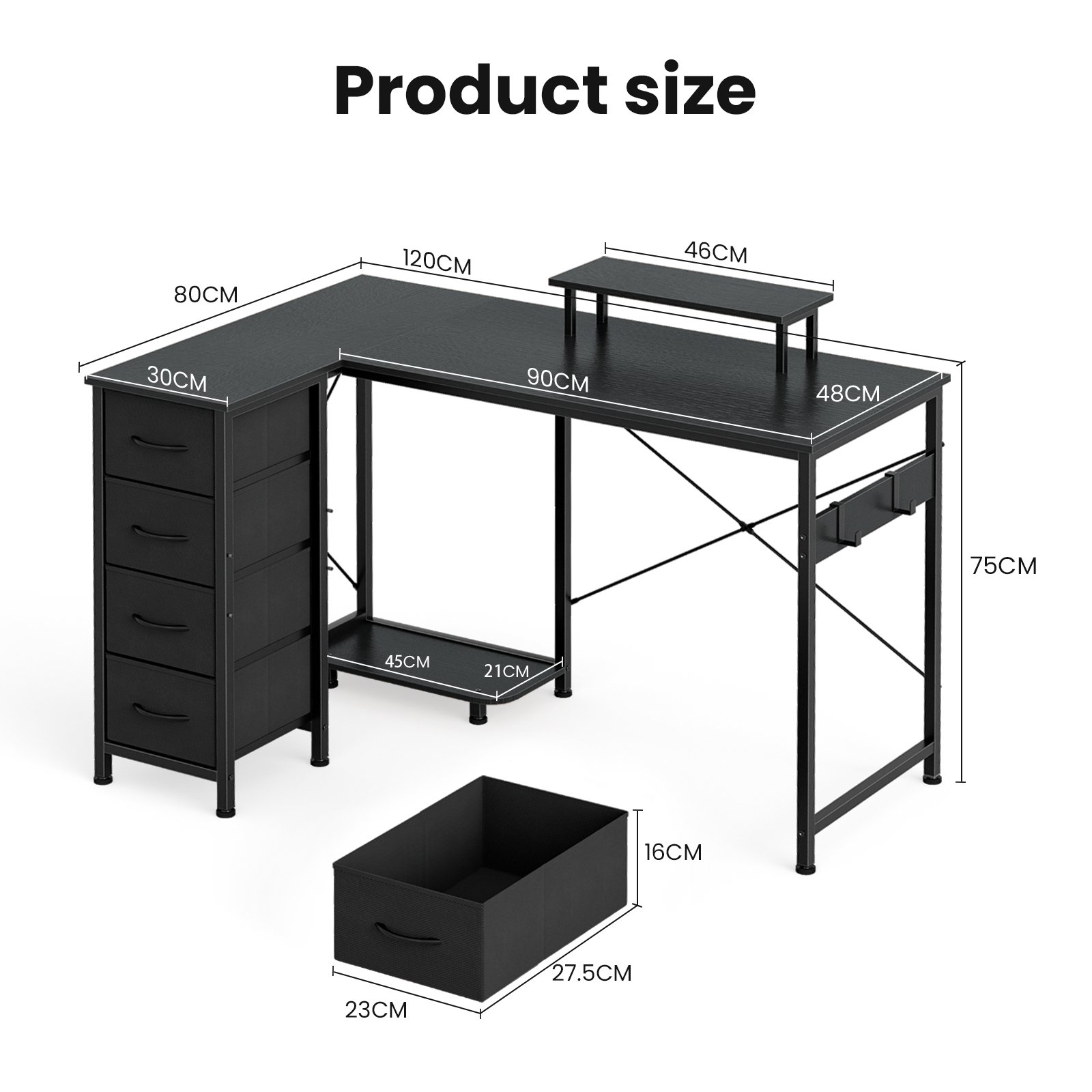 L Shaped Computer Desk with 4 Fabric Drawers, 120 * 80 * 86CM, Corner Desk with Headphone Hook&Monitor Stand, Professional PC Plate, Modern Simple Working Table for Gaming Writing
