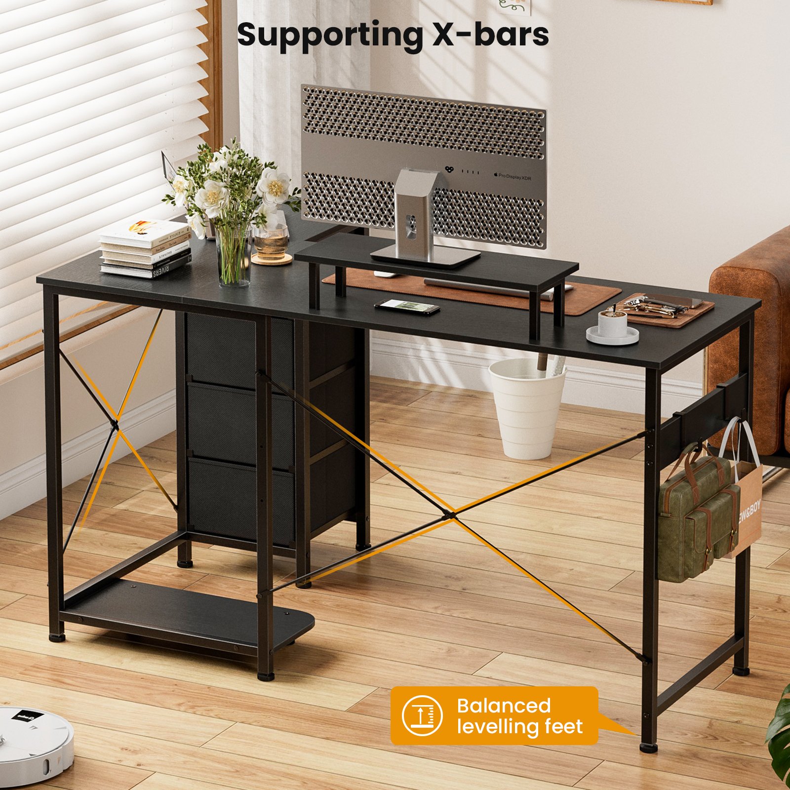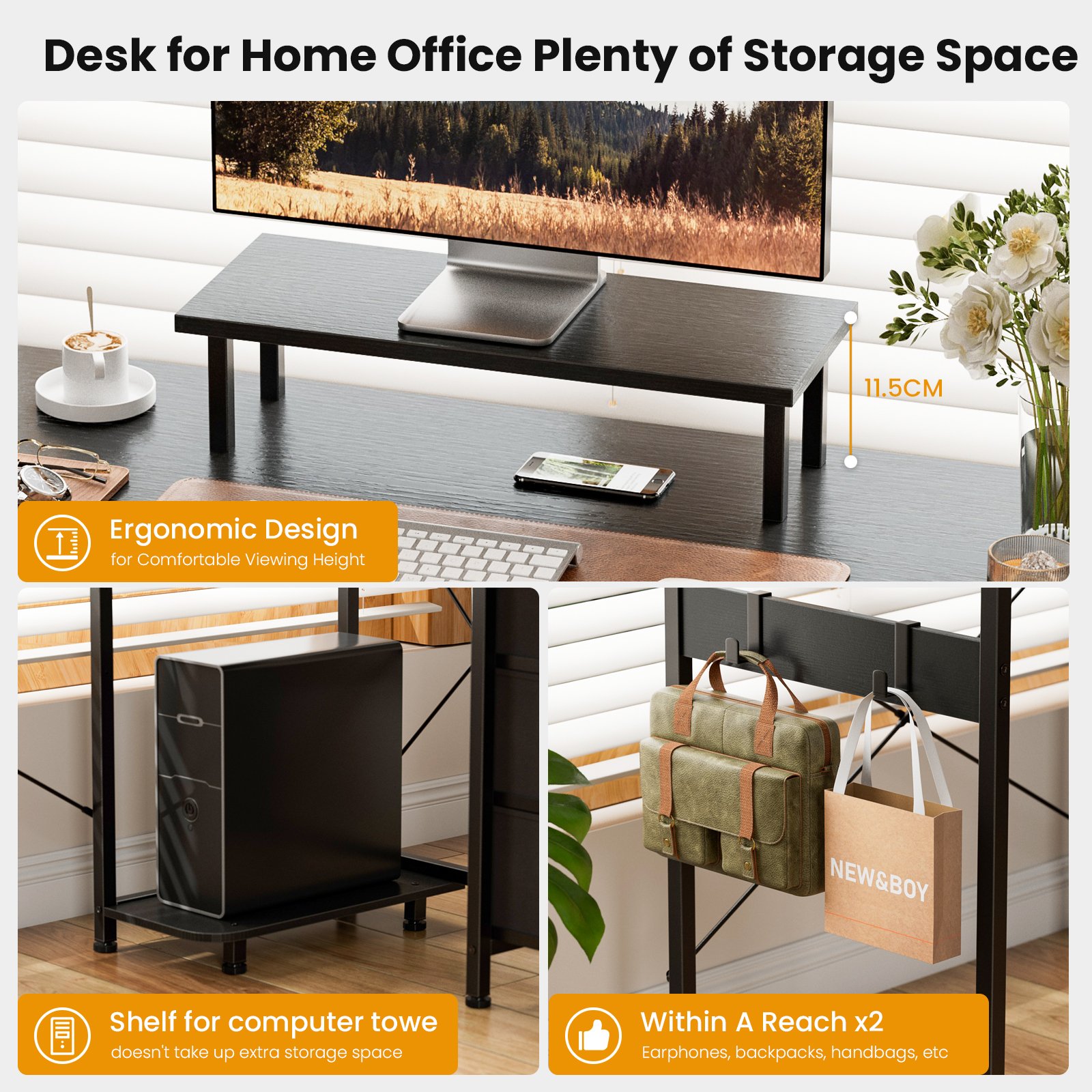 - Movable Monitor Stand: The additional computer stand elevates your monitor or laptop to a comfortable and ergonomic height. The detachable stand allows you to complete your desktop layout according to your preferences. Our office desk makes working, studying, and entertainment more comfortable.