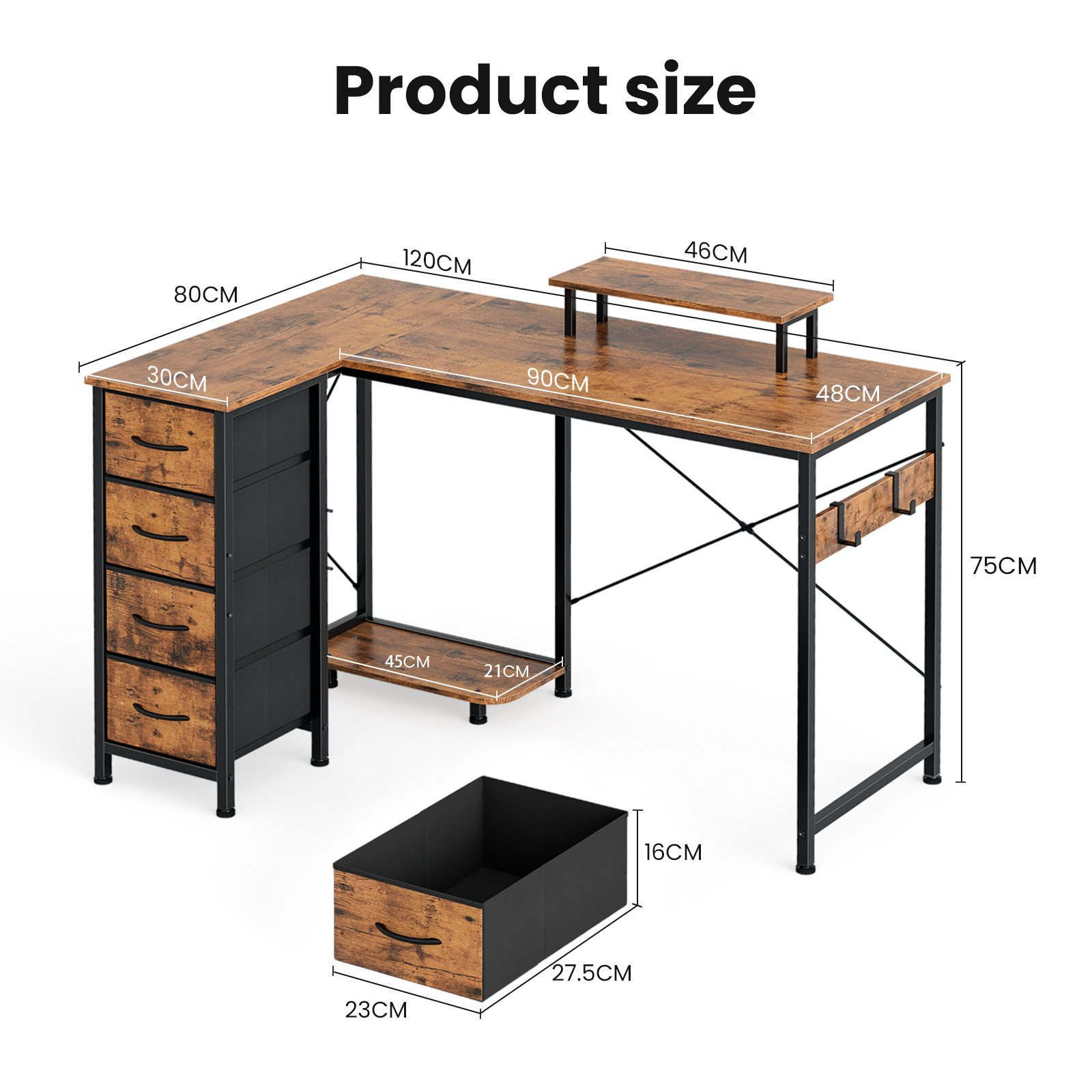 1 review for L Shaped Computer Desk with 4 Fabric Drawers, 120 * 80 * 86CM, Corner Desk with Headphone Hook&Monitor Stand, Professional PC Plate, Modern Simple Working Table for Gaming Writing