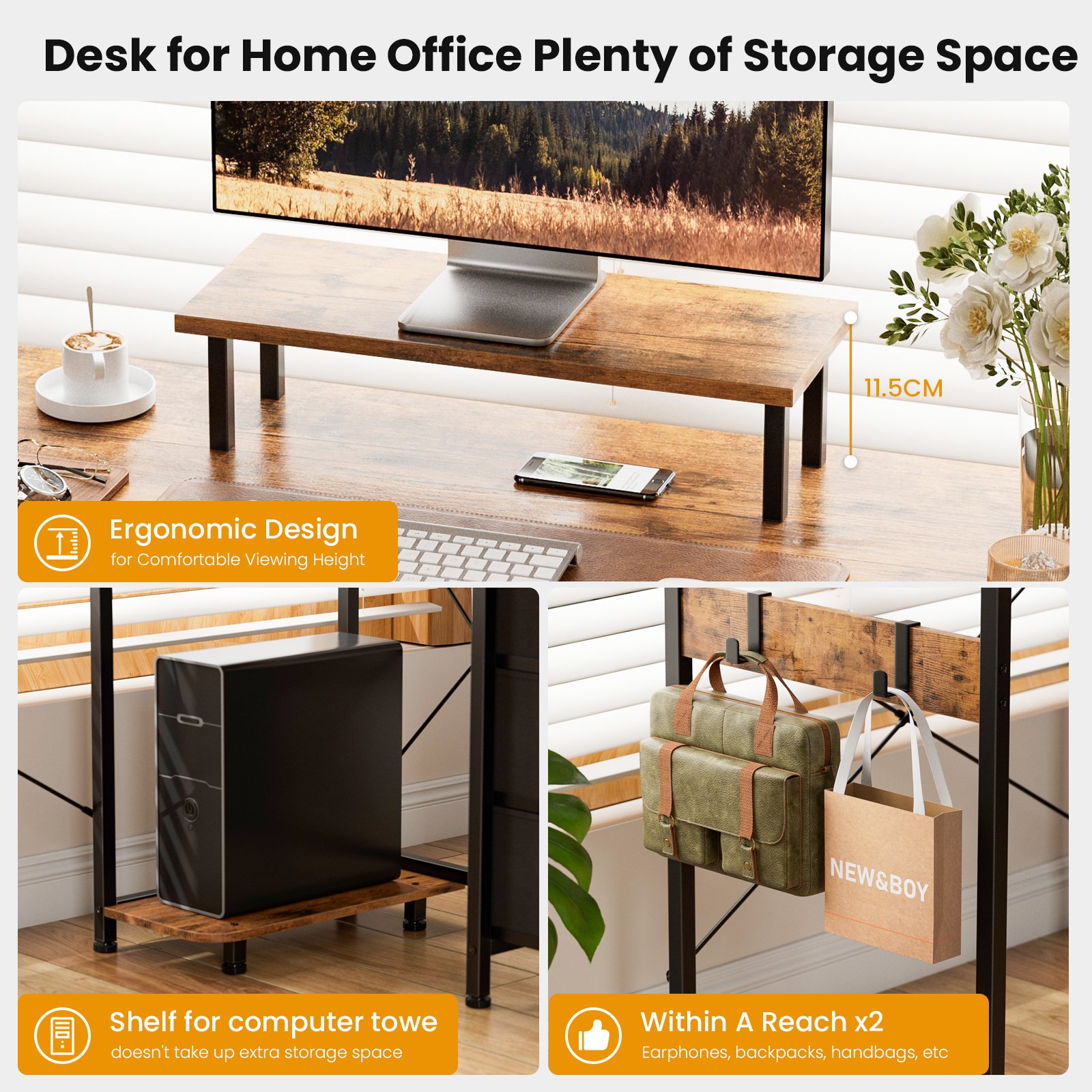 • Movable Monitor Stand: The additional computer stand elevates your monitor or laptop to a comfortable and ergonomic height. The detachable stand allows you to complete your desktop layout according to your preferences. Our office desk makes working, studying, and entertainment more comfortable.